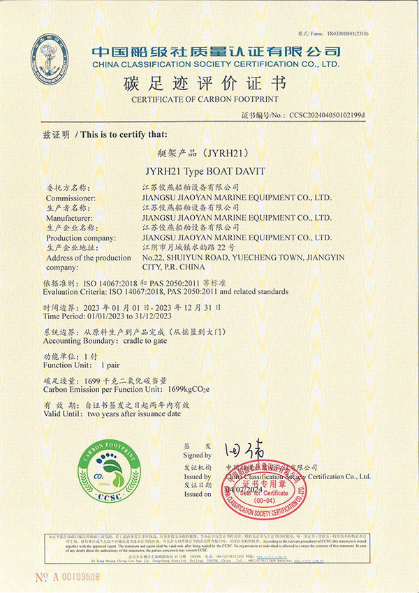 陵水 17-2 气田开发工程项目 救生艇/艇架信息一览表